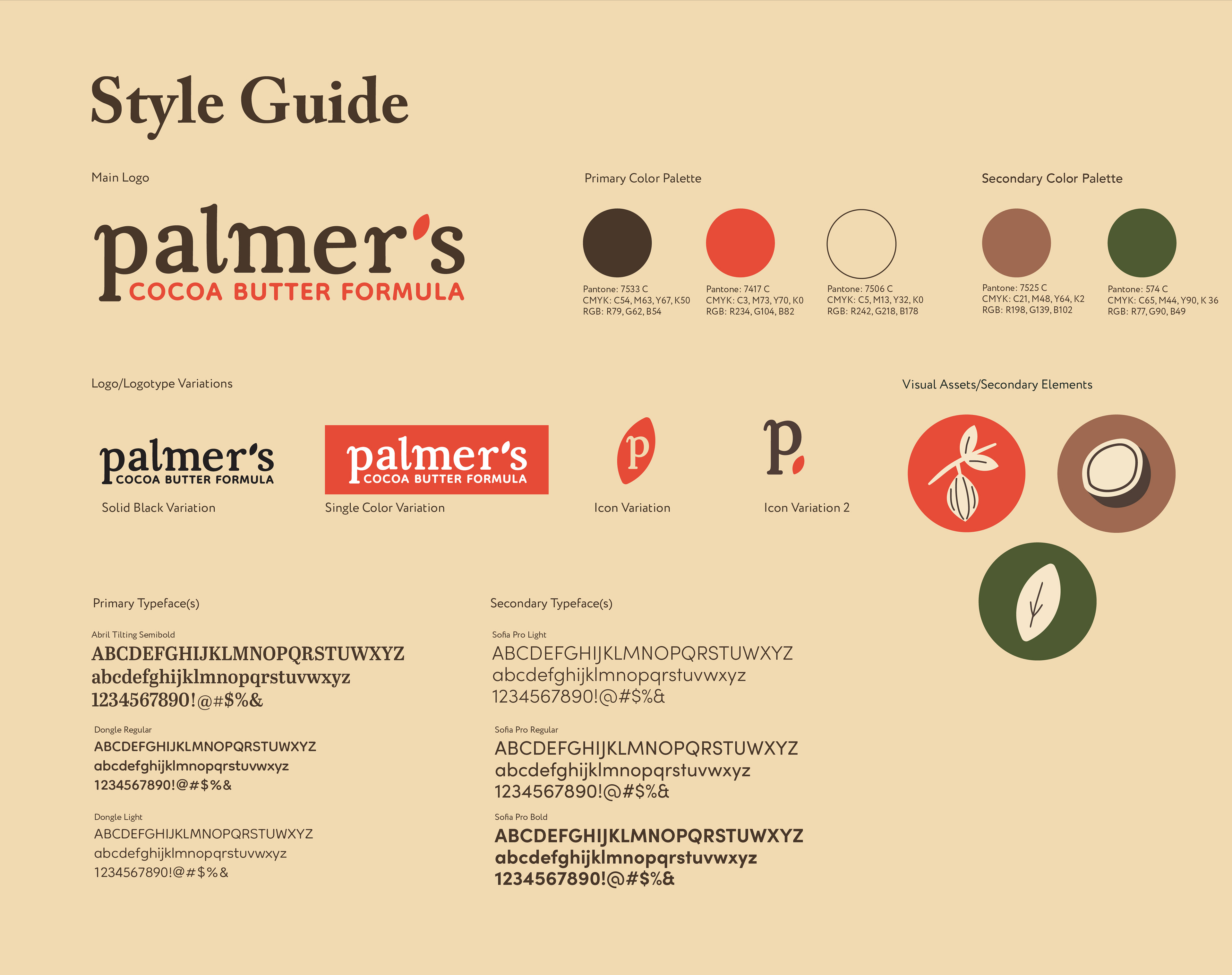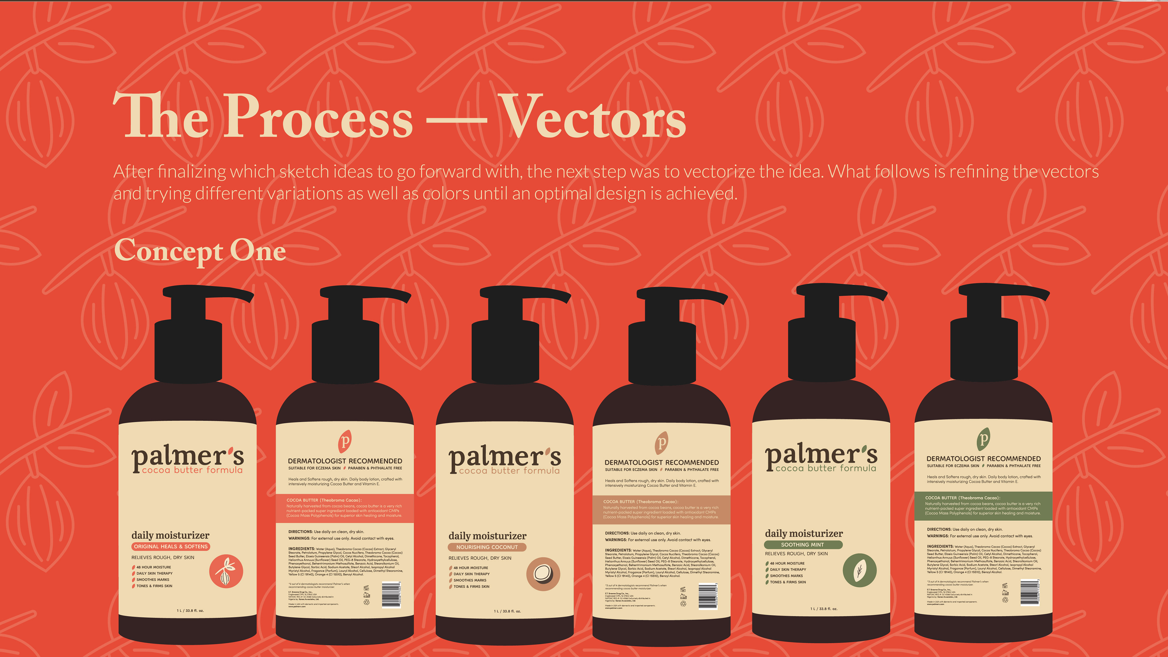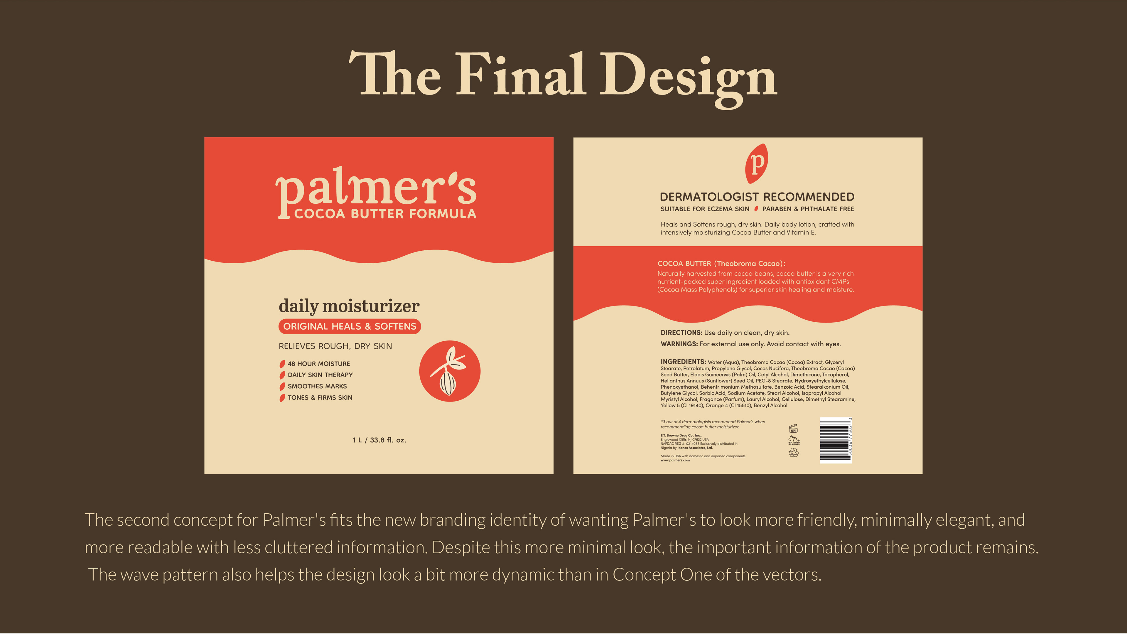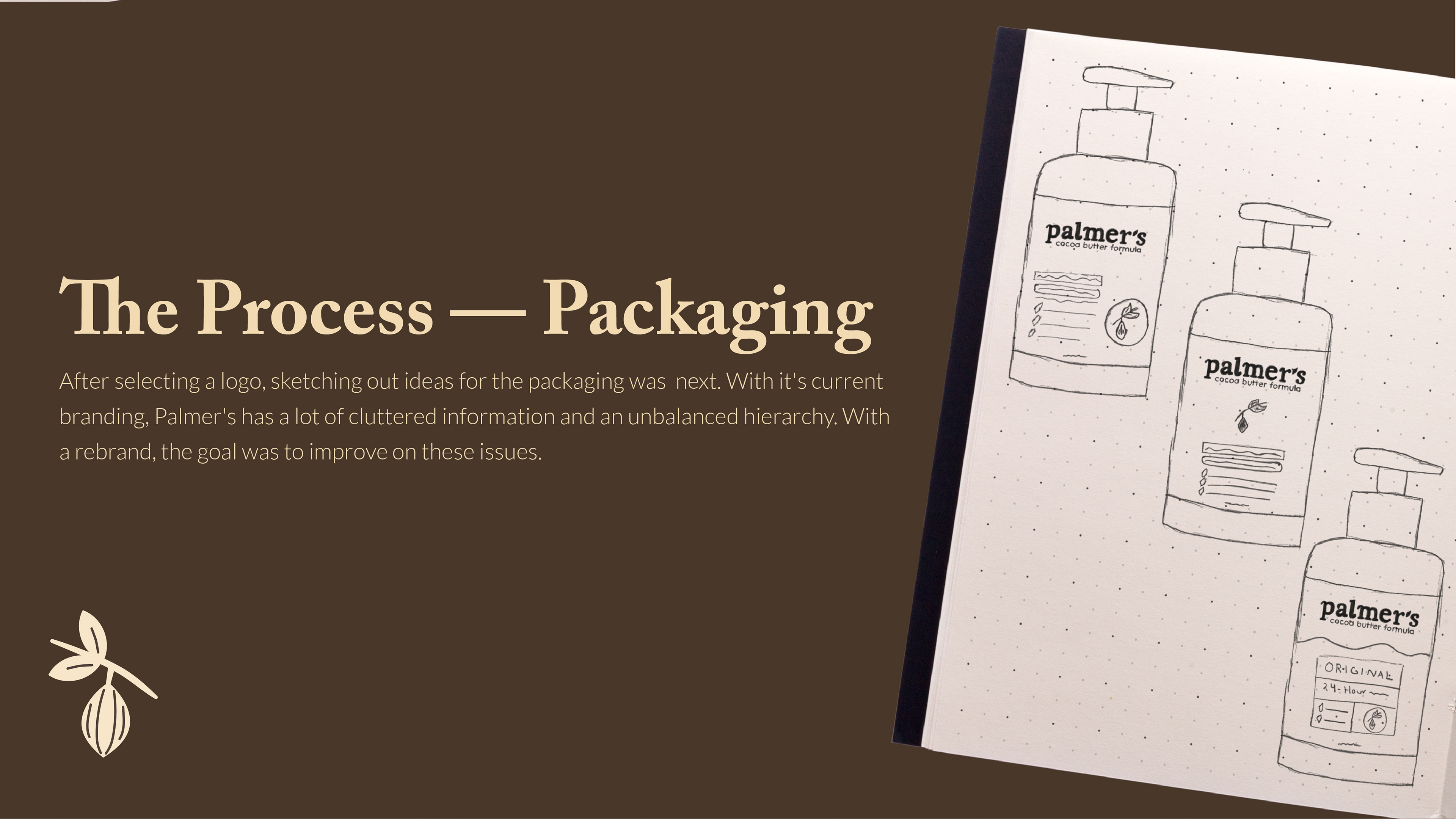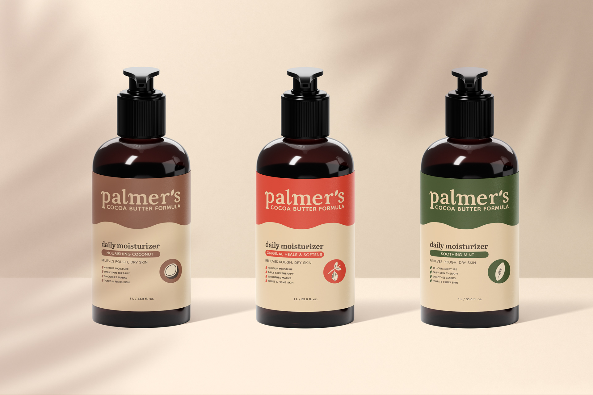 Palmer's Cocoa Butter Formula is a family-owned operated skin and hair brand that was founded in 1840. It is one of the longest-standing skin and hair care brands made in the USA. The purpose of this project was to take this family brand and give their branding a bit of a modern update to their logo and packaging.